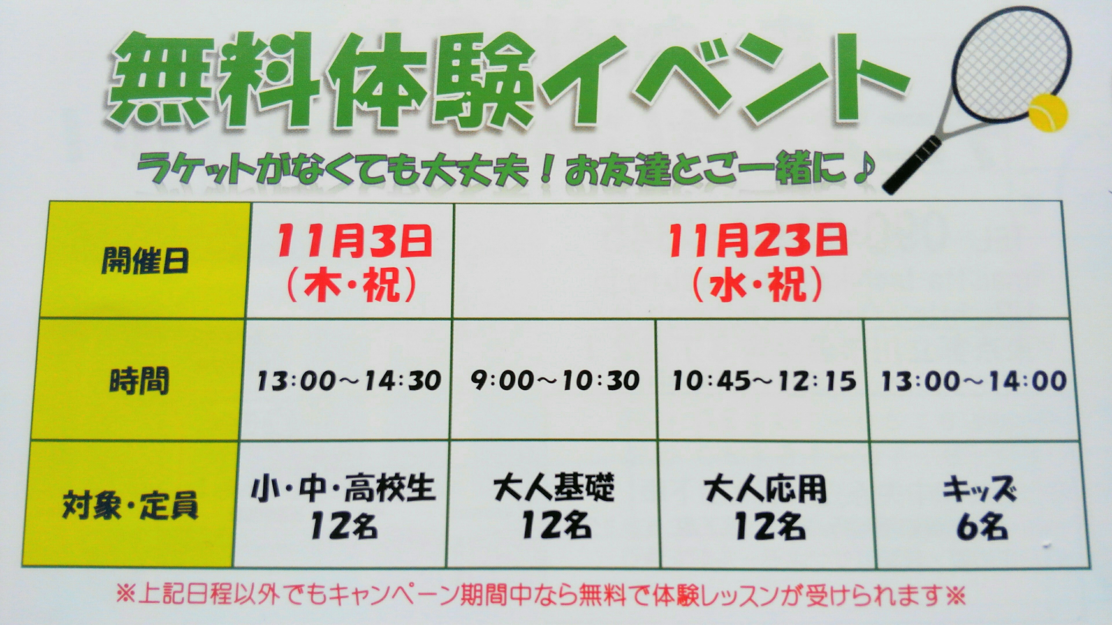 無料体験イベントのお知らせ